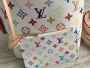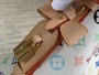 This All In BB handbag delivers the fun style of Louis Vuitton x Murakami reprint series with vivid details. Monogram-coated canvas presents the colorful rainbow tones of the artist's pen, and the brand incorporates bows and padlock decorations. Use adjustable cowhide handles and leather shoulder straps, and change them at your fingertips, shoulders and crossbody. Dimensions: 18 x 12 x 16 cm