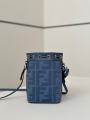Mini bucket bag washing denim embroidered double F iconic, with five mobile phone capacity, can be placed on your own, all kinds of cosmetics are practical and combine exquisiteness and softness, full of girlishness Size: 12×18×10