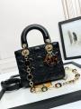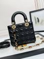Sheep tendon leather, counter spring core U button✨ 4 grid sheepskin black agate chain ✨ ✨ Circular plaid patent leather cowhide mini handbag, Cannage plaid stitching decoration, and light metal accessories. The shoulder straps can be decorated with badges to show personality and can be carried, shoulders or crossbody. It can be customized with a wide shoulder strap, and the default is ❤+DIOR + 3-leaf flower 6 badges, or you can choose 6 badges for yourself. Model: D6011 sheepskin, size: 20 x 16.5 x 8cm, exclusive physical shot✨669850 with original packaging gift box]