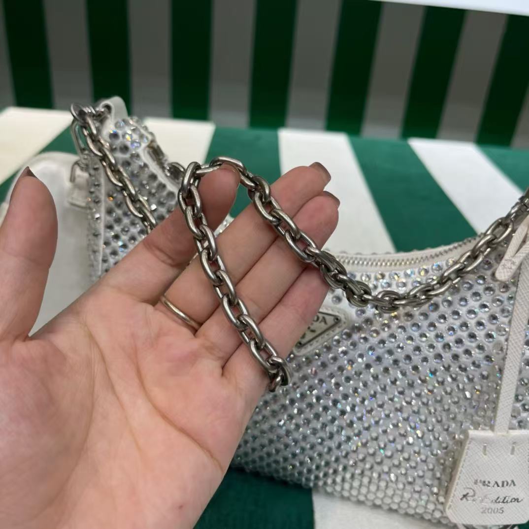 The most beautiful and flashy imported European diamonds. The bright and flashy appearance of the night lights. The effect of blingbling under the night light is very eye-catching. The first and third-use favorite is that the shoulder straps are also hung with a small ornament (small bag). People will praise it everywhere you get this kind of flashing diamond bag is also very easy to wear. It is fairy and cool, and it is suitable for any occasion. The three-in-one hot elements have always been recognized by Internet celebrities/celebrities. It is another permanently popular three-in-one 1BH204, length 22x 16x 6cm.