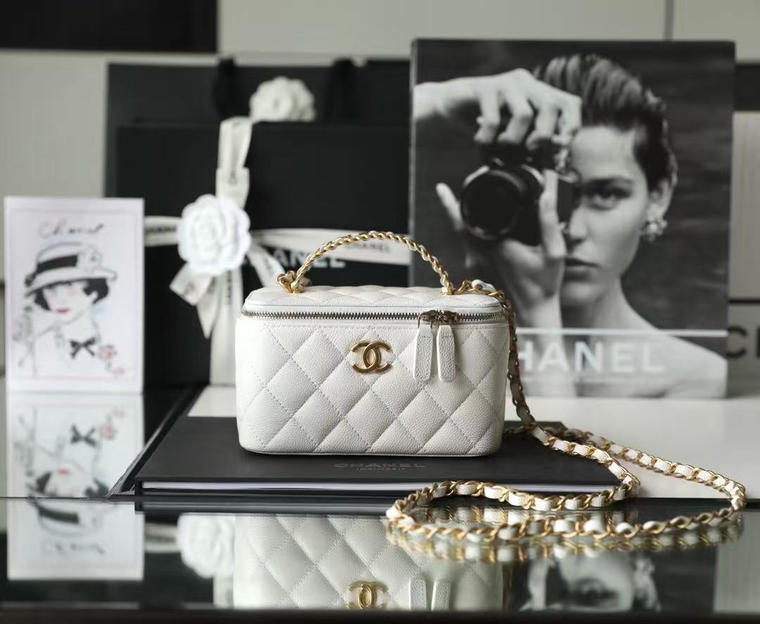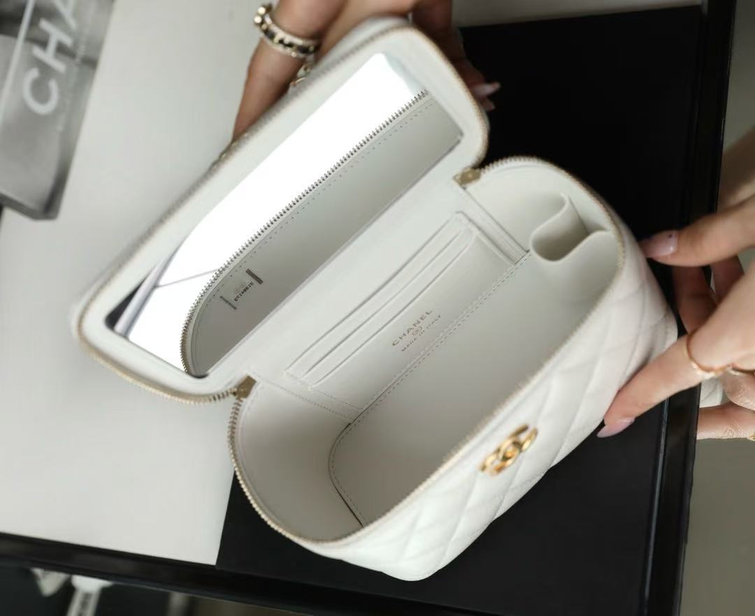 The white fairy color is very summer handle box is so special and very collectible. This handle is so exquisite and a little retro style. The material is cowhide and it comes with a mirror. The lipstick plaid is really awesome. I really like the large capacity and can hold many things in daily life.〰️☑️ Hardware: All copper retro gold leather: Exclusive opening channel mid-ball size; 9.5/17/8cm
